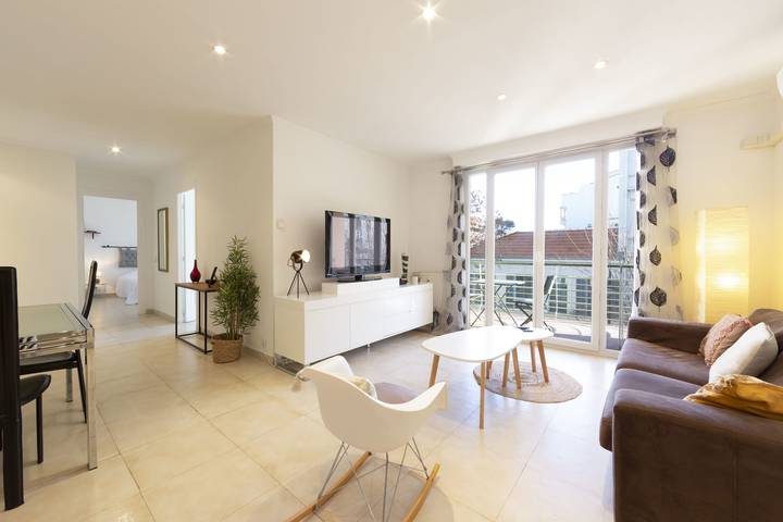 Soak up the Mediterranean sun, sand and the sea from this lovely holiday apartment in Antibes just a short walk from the beach! Located at a convenient 10-minutes from the wide Plage du Ponteil, this 5th-floor retreat with a lift is ideal for groups with children as well as the elderly. The apartment has a large balcony perfect to unwind on-site with delightful doses of sunlight and a tranquil view of the sea. Inside, the apartment easily accommodates up to 4 guests and comes fully furnished with stylish yet cosy interiors to create your ideal home away from home. There are 2 balcony bedroo...